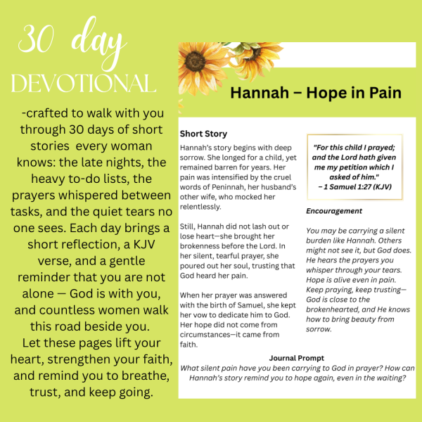 Each devotional invites you to pause, reflect, and be uplifted through their stories—filled with strength, hope, and God’s divine purpose.