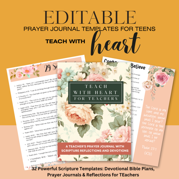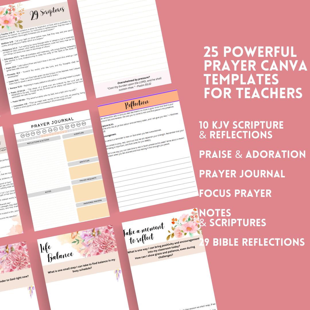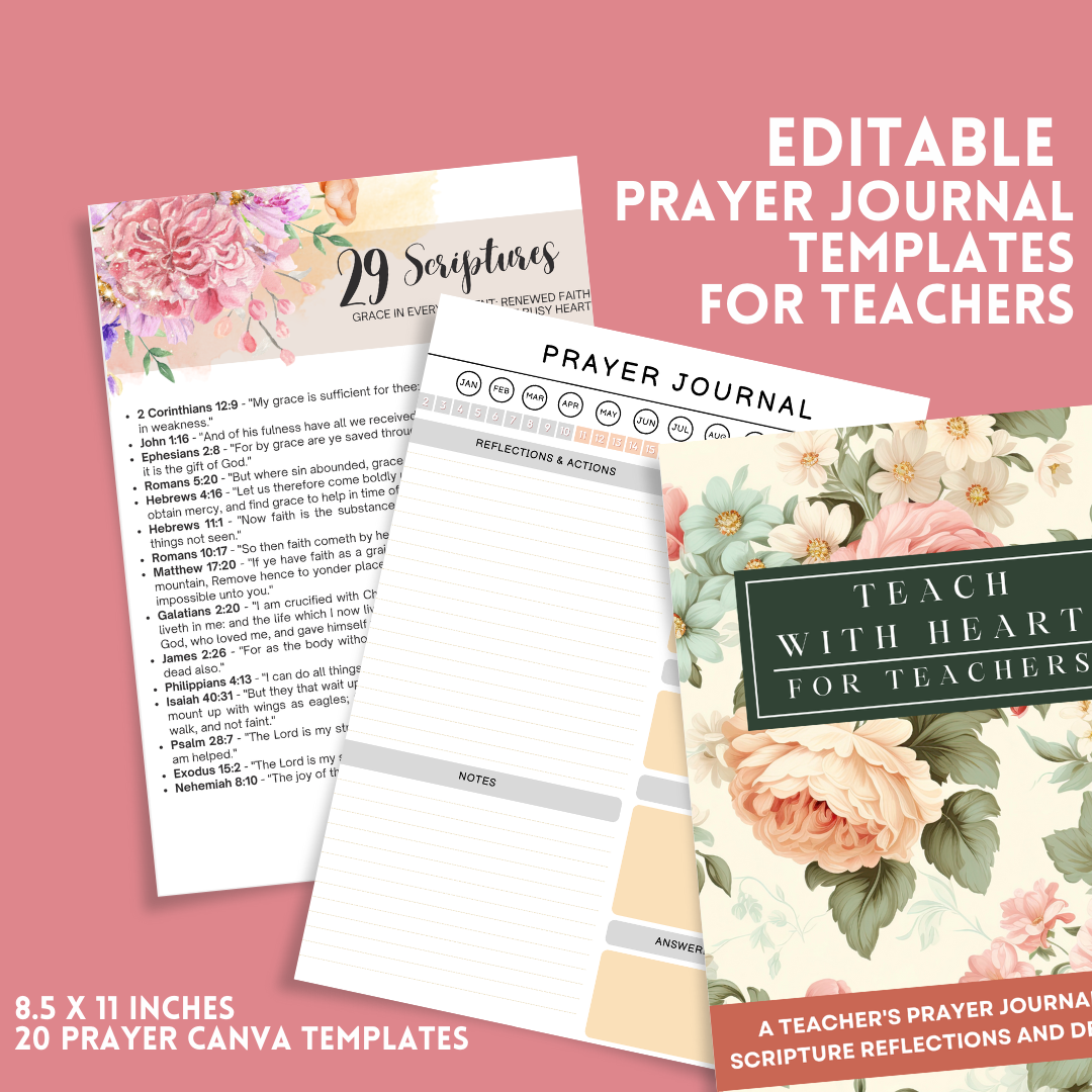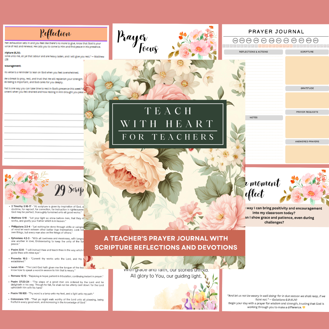 Inspire and uplift educators with this beautifully designed, fully editable, and resellable KJV scripture-filled prayer journal! Designed specifically for teachers, this journal serves as a daily companion for reflection, strength, and spiritual growth, helping them stay rooted in faith while navigating the demands of teaching.