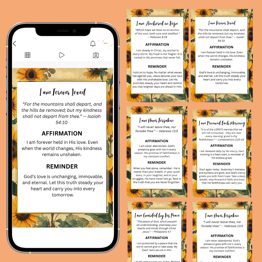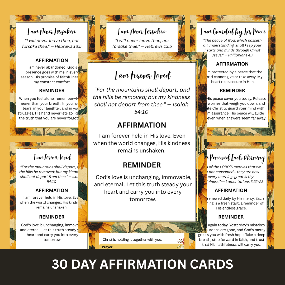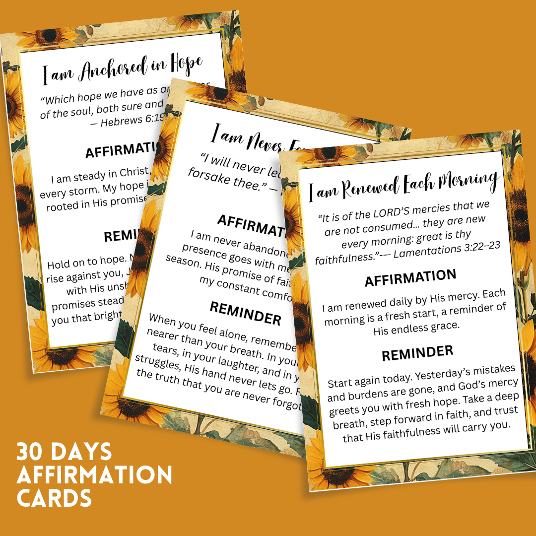 Inspire hearts and strengthen faith with these beautifully designed Affirmation Cards for Women of Faith. Each card is filled with powerful Bible verses and uplifting reminders, perfect for encouraging reflection, hope, and daily spiritual growth.