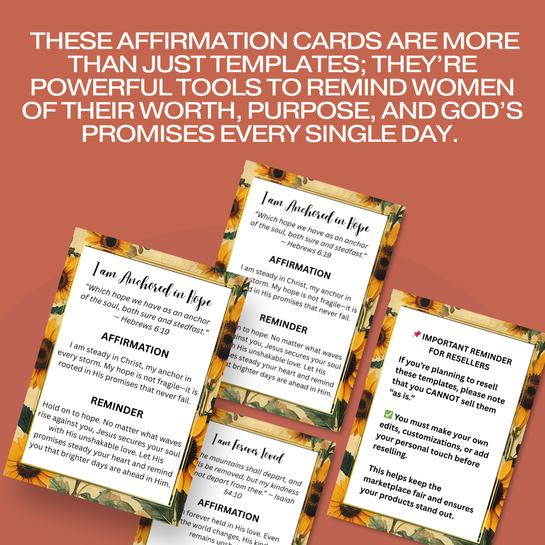 🎁 Encouragement in Every Card — These affirmation cards are more than just templates; they’re powerful tools to remind women of their worth, purpose, and God’s promises every single day. ✨🌿