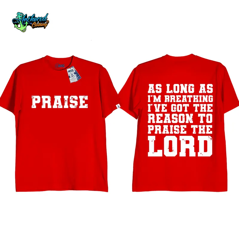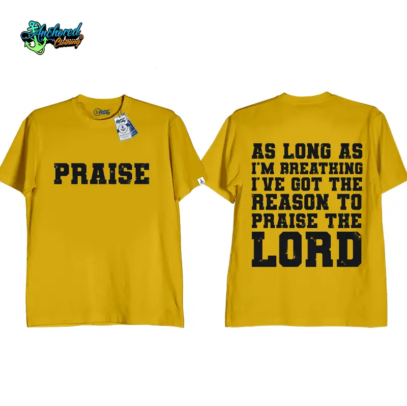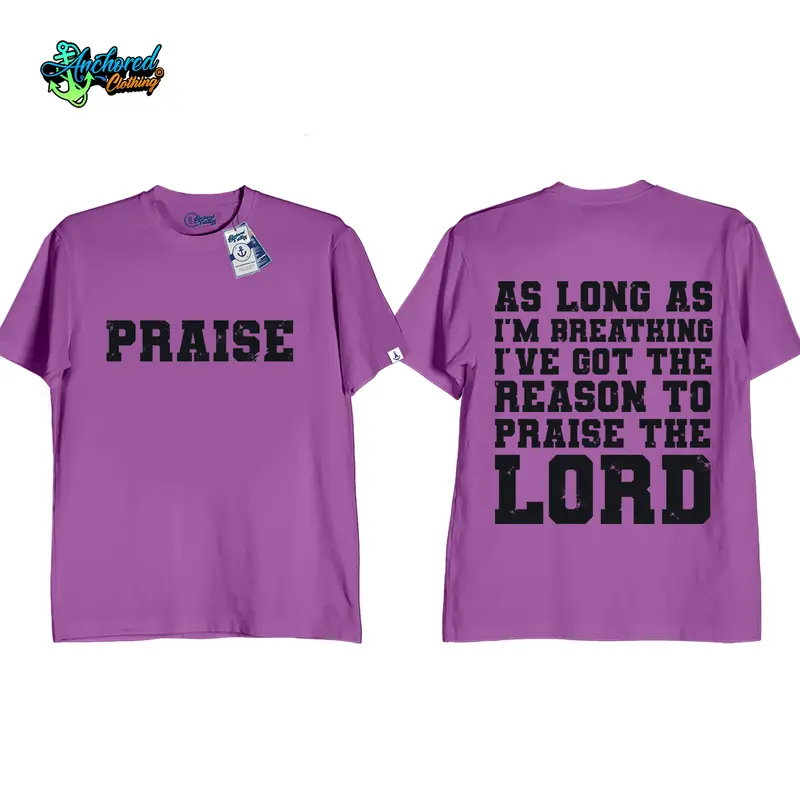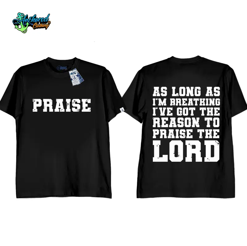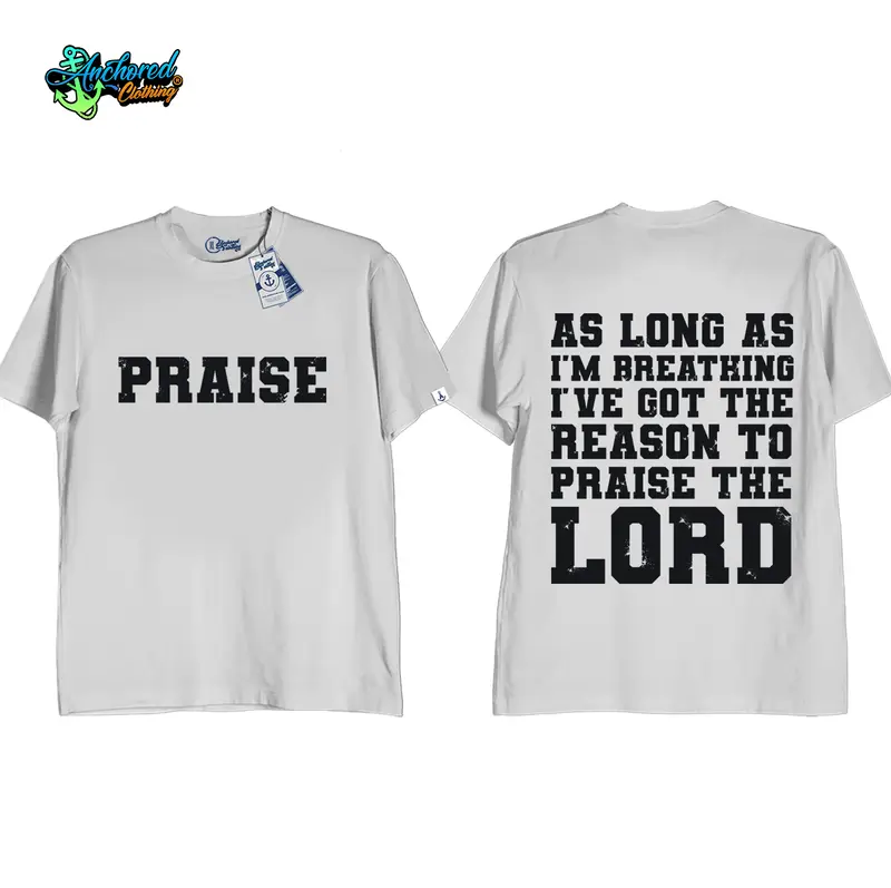 Anchored Clothing Premium “Praise As Long As I’m Breathing, I’ve Got the Reason to Praise the Lord” Bible Verse Graphic T-Shirt for Men and Women | Cotton Streetwear Round Neck Crewneck Casual Short Sleeve Tee