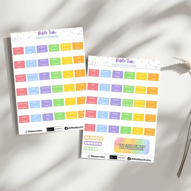Add beauty and organization to your Bible study with these colorful mini Bible tabs — making it easy to find every book at a glance! 🌸