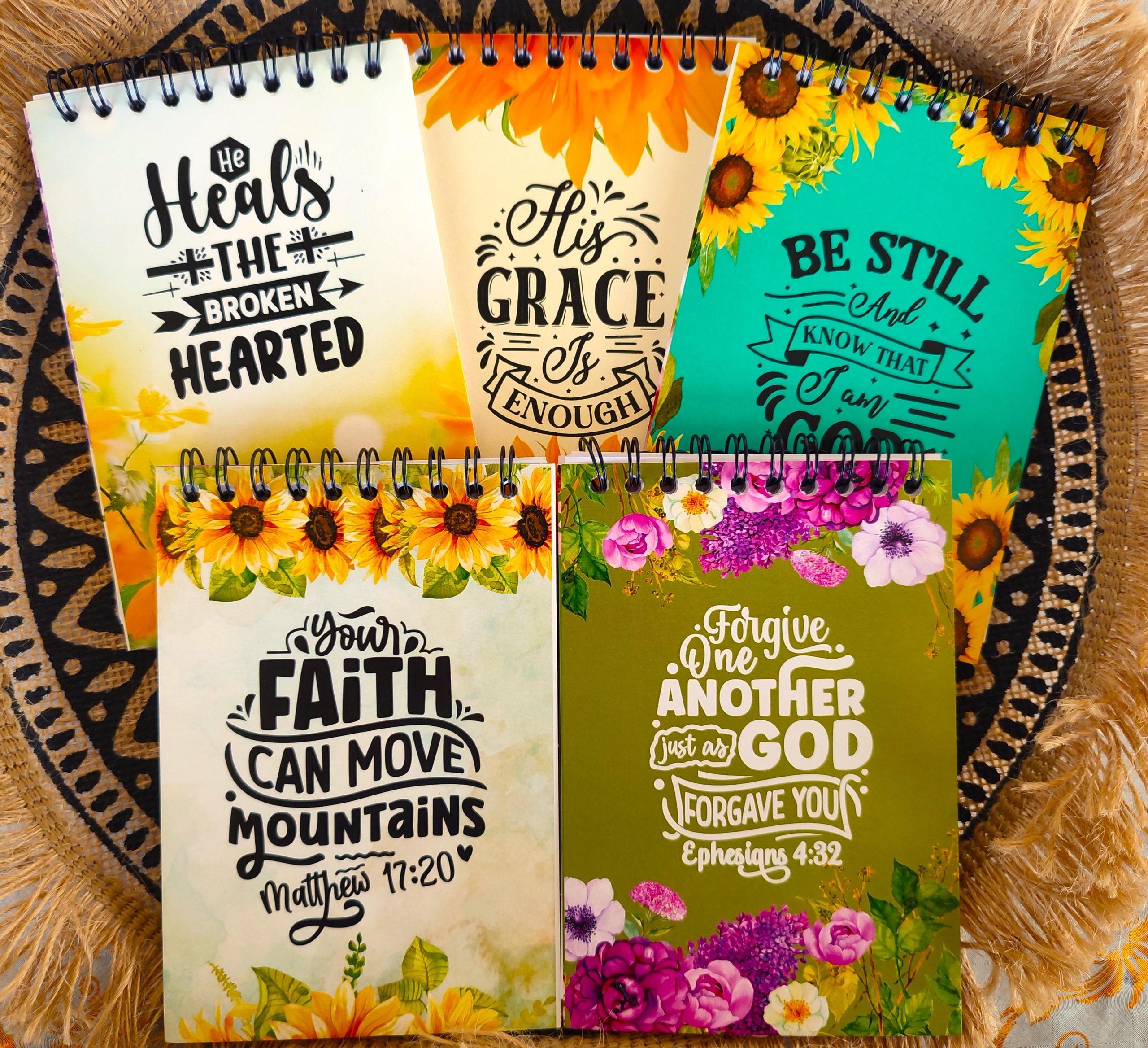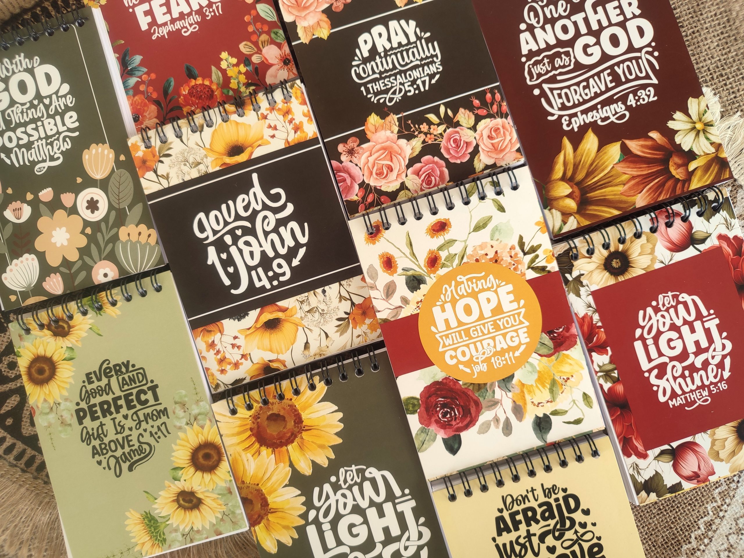 Perfect for ministries, giveaways, or thoughtful gifts, these Bible Verse Spring Notepads are both practical and inspiring. Each notepad comes with a cover featuring uplifting verses, while the inside offers 50 blank pages for writing, journaling, or note-taking.